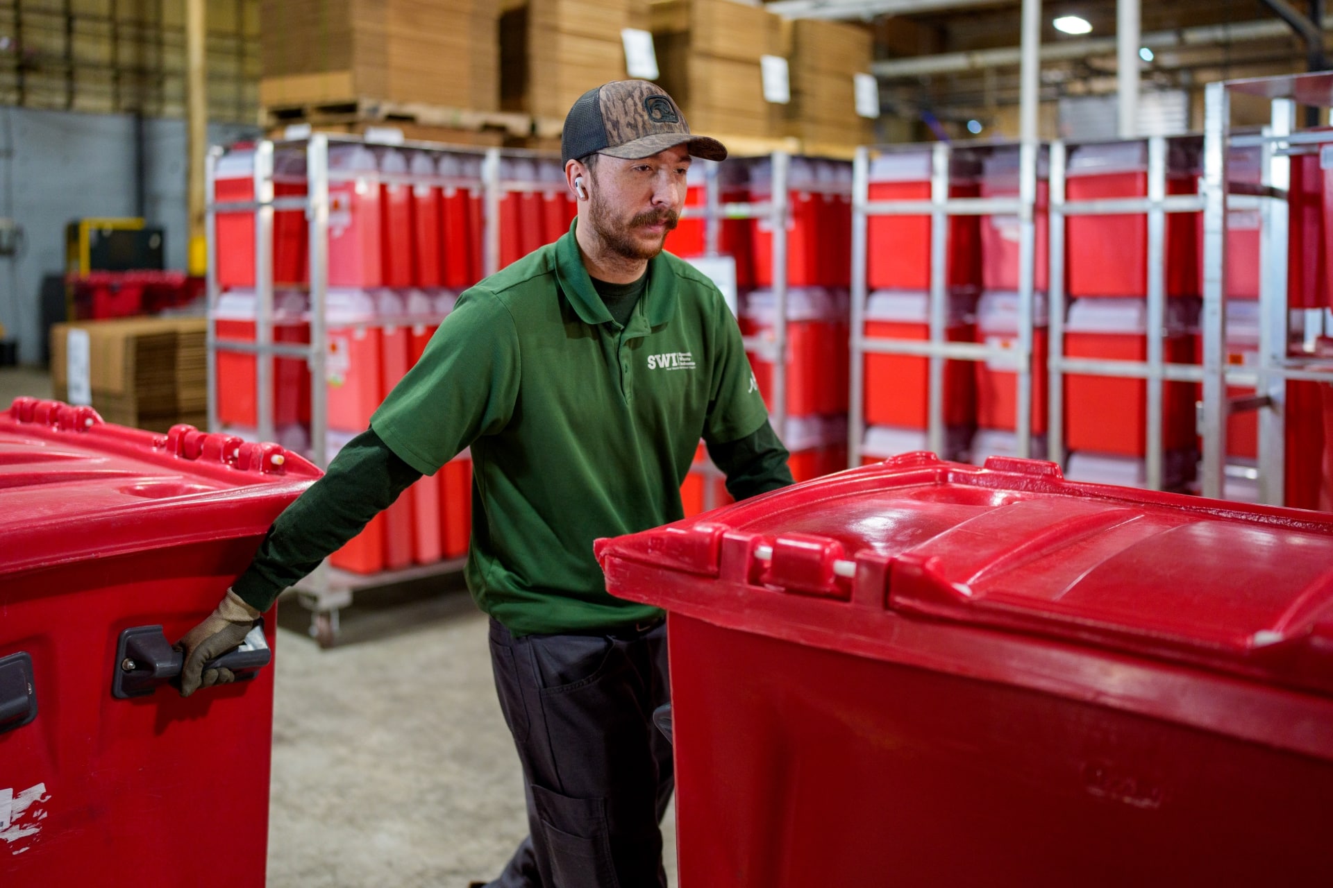 • Crews guide bins through soft turns that lower spill risk during peak time